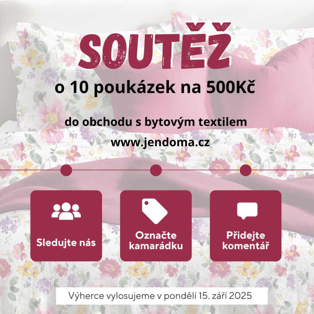 Soutěž probíhá v období od 5.9.2025 do 14.9.2025 do 24:00 na sociálních sítích Facebook a Instagram profilů Jendoma.cz. -